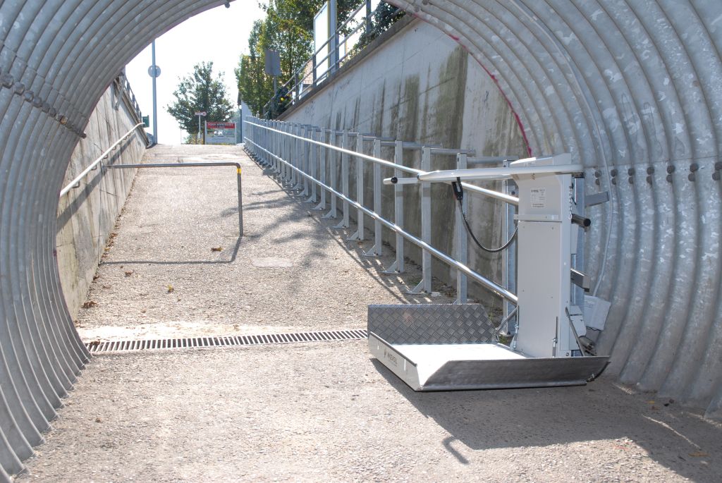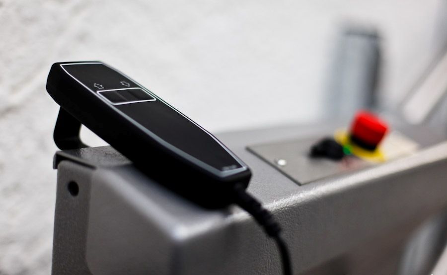 Er ist innen ebenso wie draußen einsetzbar; seine Plattform lässt sich wahlweise automatisch oder manuell betreiben. Ein Drucktaster sorgt für die unkomplizierte, sichere Bedienung.
