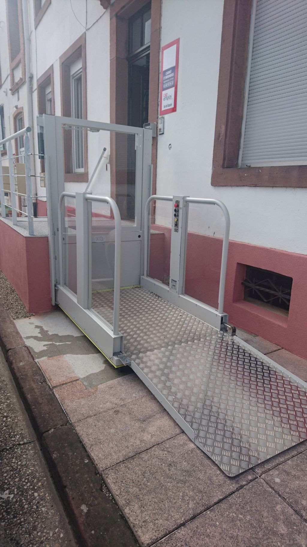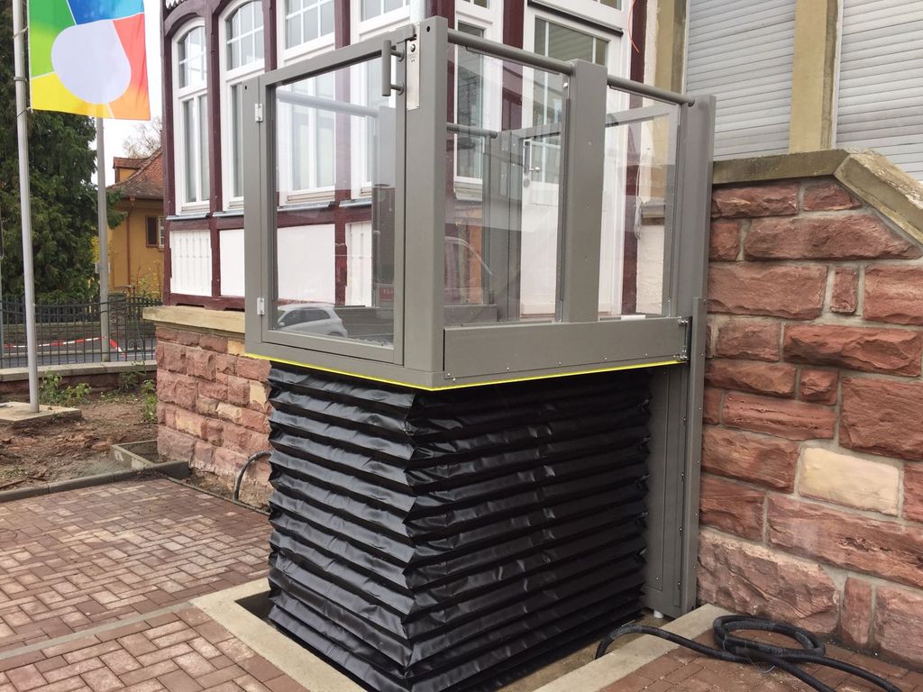 Der Liftboy 5 ist ein einzigartiger vertikaler Rollstuhllift mit einer Hubhöhe von bis zu 1300 mm. Dieser Doppelscherenhublift wird rein elektrisch mit 2 Aktuatoren angetrieben.