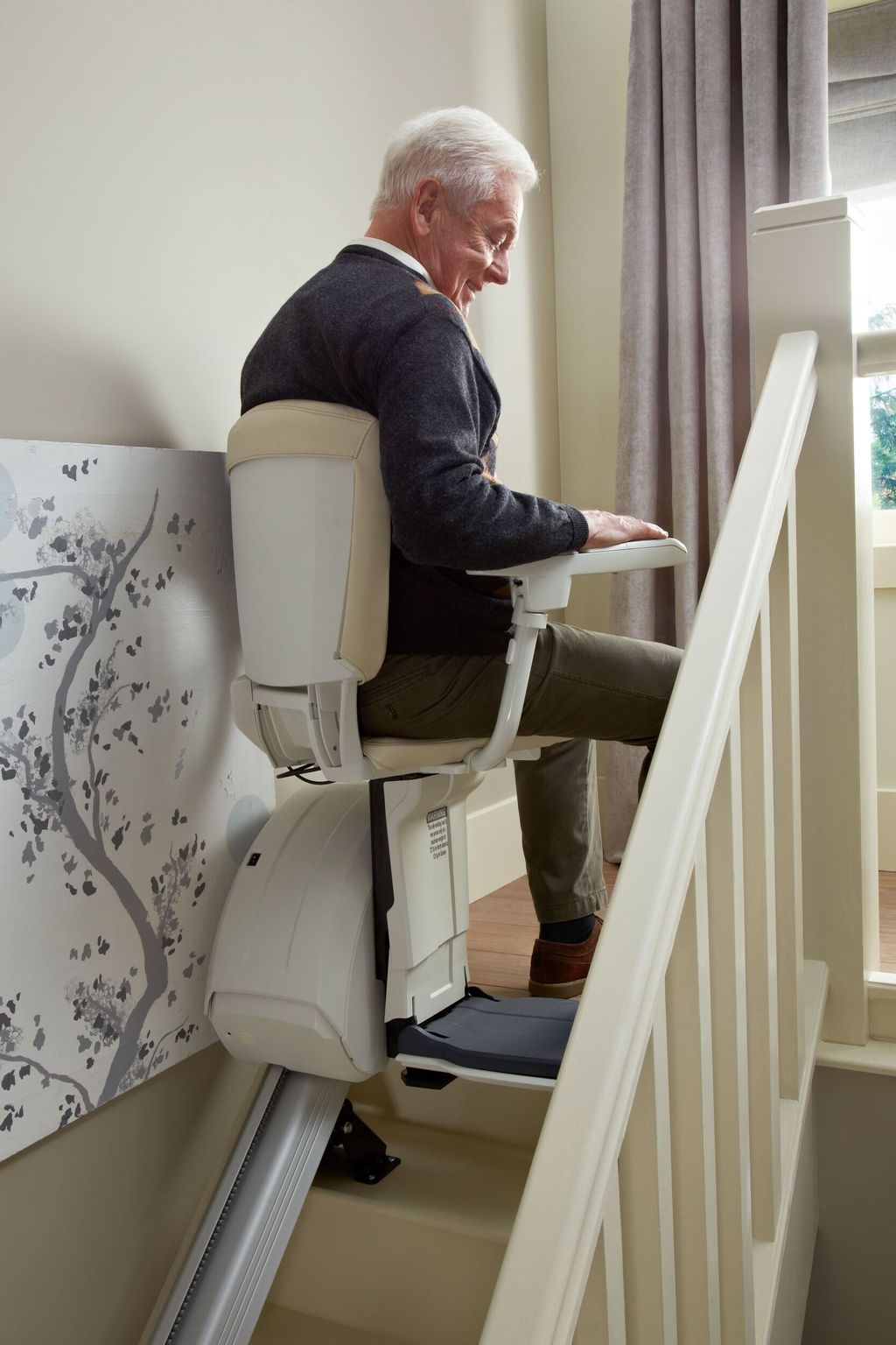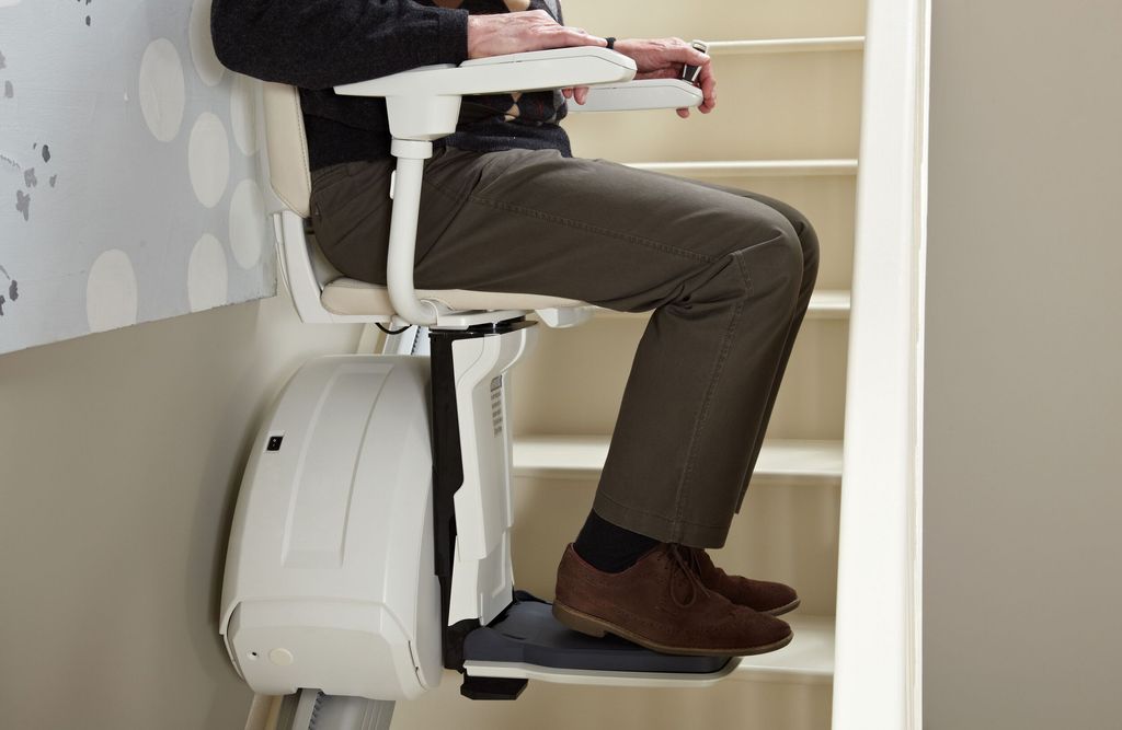 Durch seinen optionalen Drehmotor für den Sitz wird Ihnen das Aussteigen am oberen Ende der Treppe noch leichter gemacht und auch die Notwendigkeit, das Fußbrett hochzuklappen, entfällt.