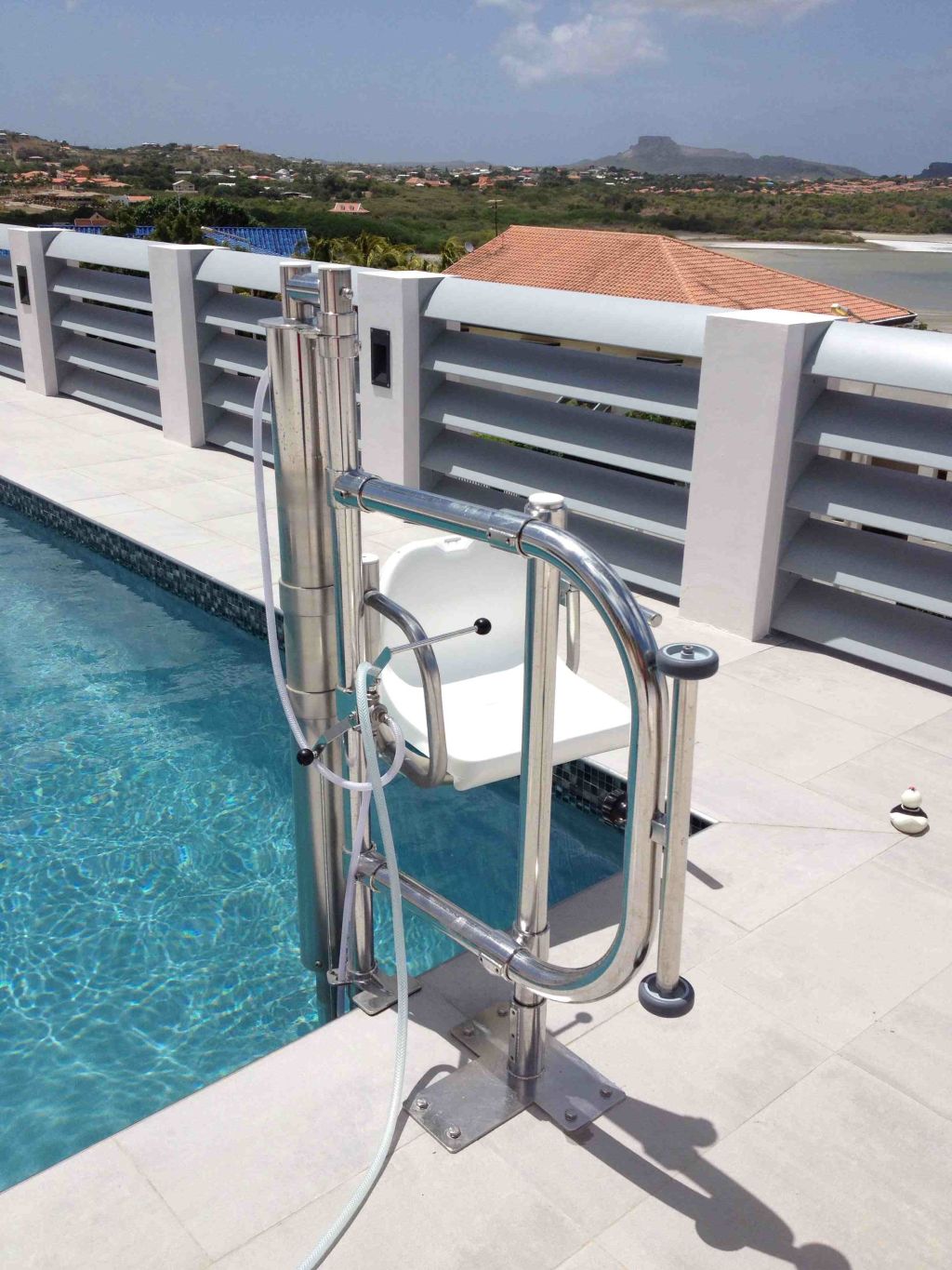 Der Poollift „Delphin“ dient als praktische Hilfe beim Ein- und Ausstieg aus dem Schwimmbad. Er ermöglicht Ihnen den Zugang zu kühlender Erfrischung bzw. zur heilsamen Wassergymnastik.